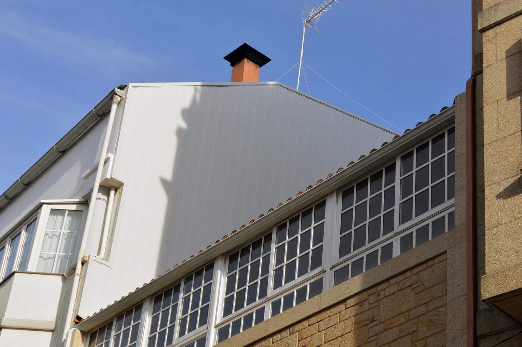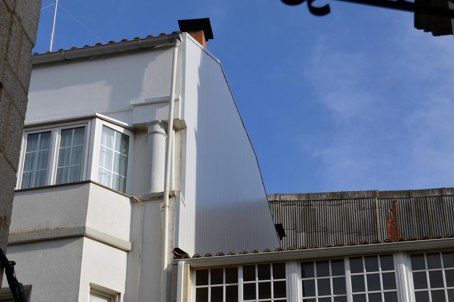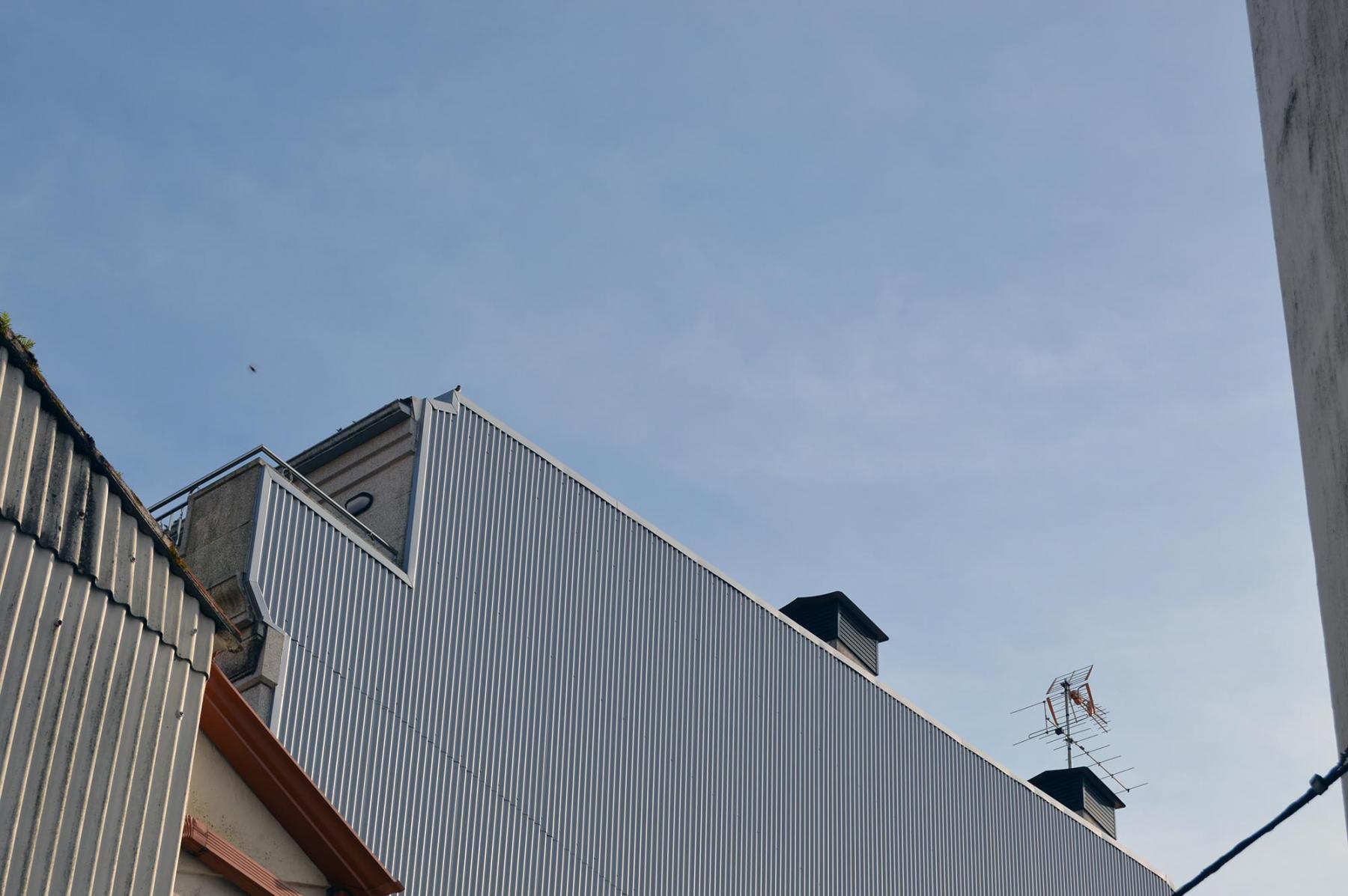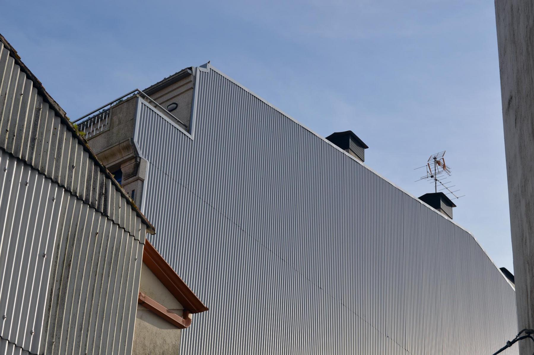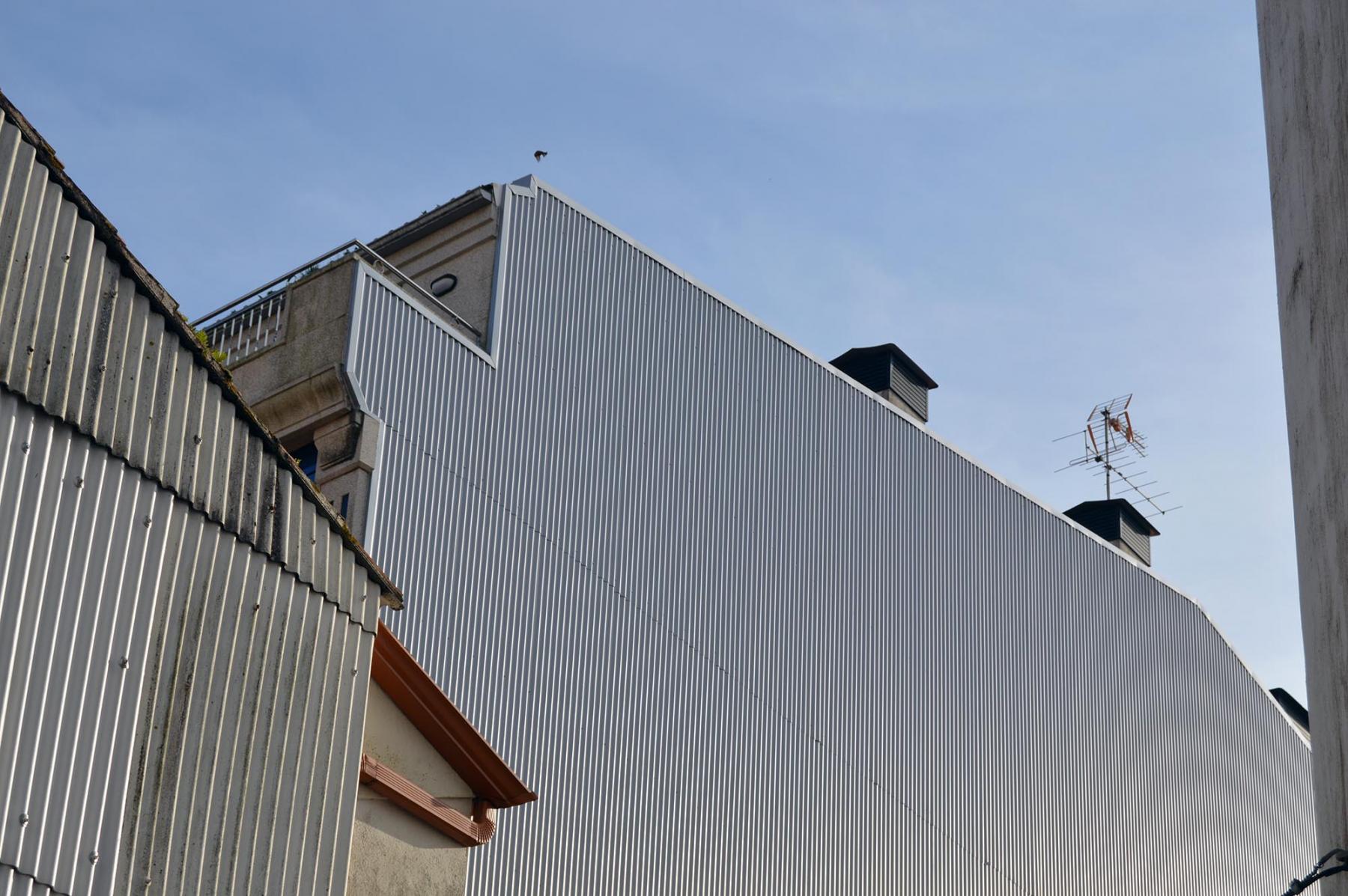 Forrado de fachada lateral de edificio en panel sándwich de 30 mm de espesor con chapa prelacada 0.6 color blanco